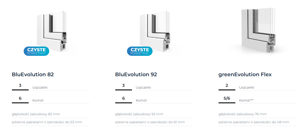 Szeroki wybór systemów, ciepłe profile, nieskończone możliwości konstrukcyjne i bogactwo dodatków. Okna PVC sprawdzają się zarówno do domków jednorodzinnych jak i budownictwa wielorodzinnego.